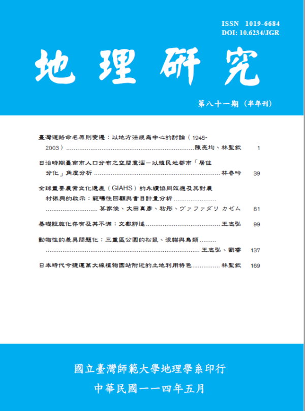 地址:10610 台北市和平東路一段162號(國立臺灣師範大學地理學系)